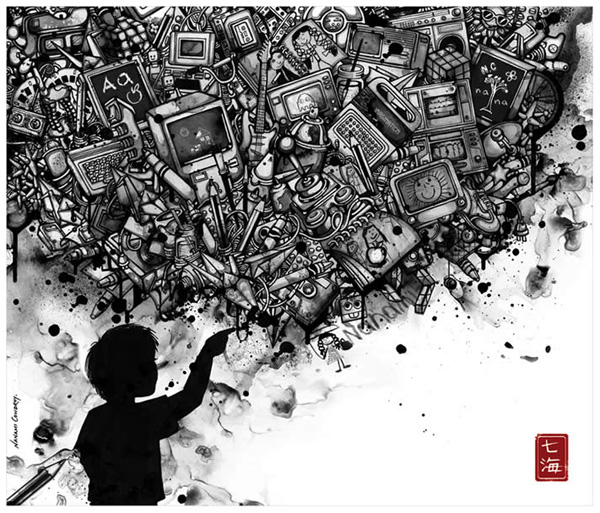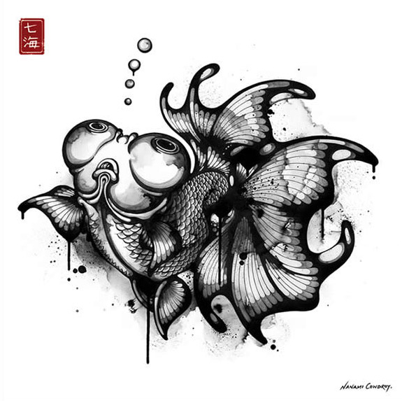 (Weekly Story Theme: Romance) Nanami Cowdroy tented her fingers together and twiddled her thumbs. Her legs were crossed tightly, and she was sunk far down into a huge comfortable couch with a pillow stuck between her arms and her chest. As if to remain balanced on a fulcrum, her date sat at the opposite end of the sofa. Nanami clicked the remote, and the T.V. image shrunk to blackness, and the only sound left in the room was the gurgle of a large tropical fish tank that stood behind the couch. As Nanami scooted in closer to her date, so he scooted closer to her, maintaining that tricky balance. The kissing Gouramis fluttered around in the tank and pressed their lips together, as Nanami Cowdroy and her date did the same. Ever since that first kiss, Nanami Cowdroy has been inspired by exotic fish in her art.